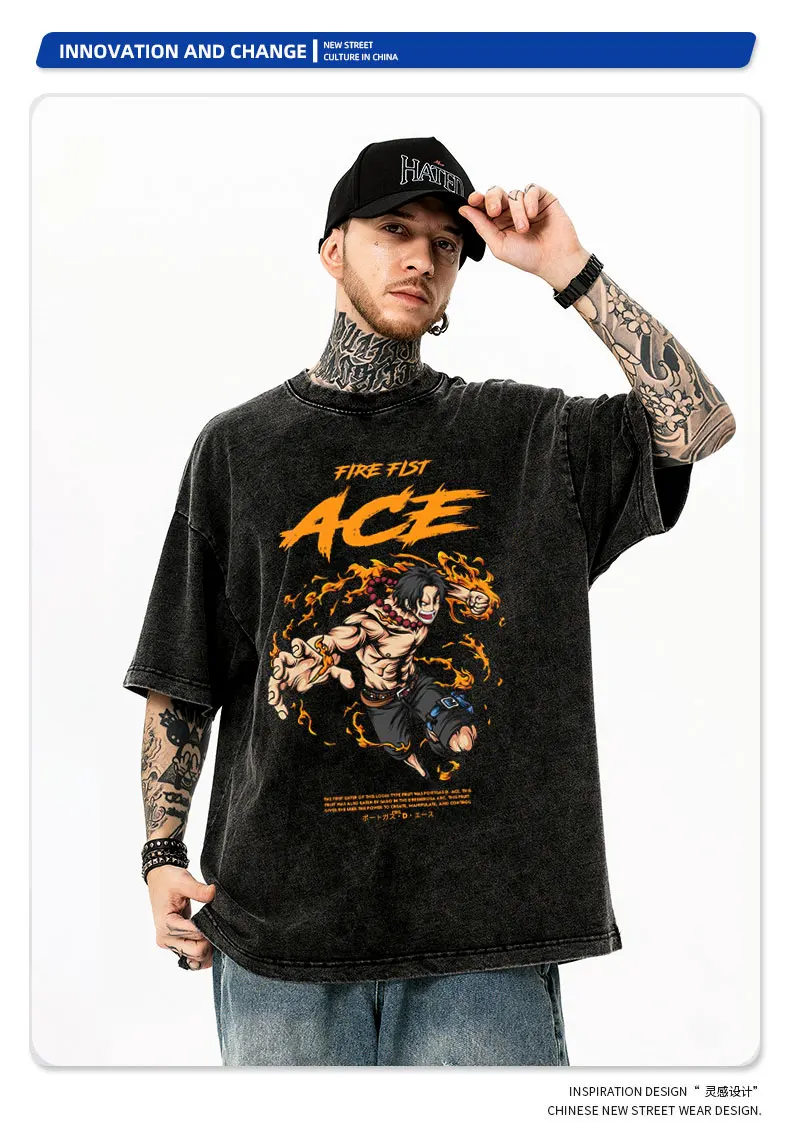 Camiseta Estampada Ace (Punhos de Fogo) - Anime One Piece